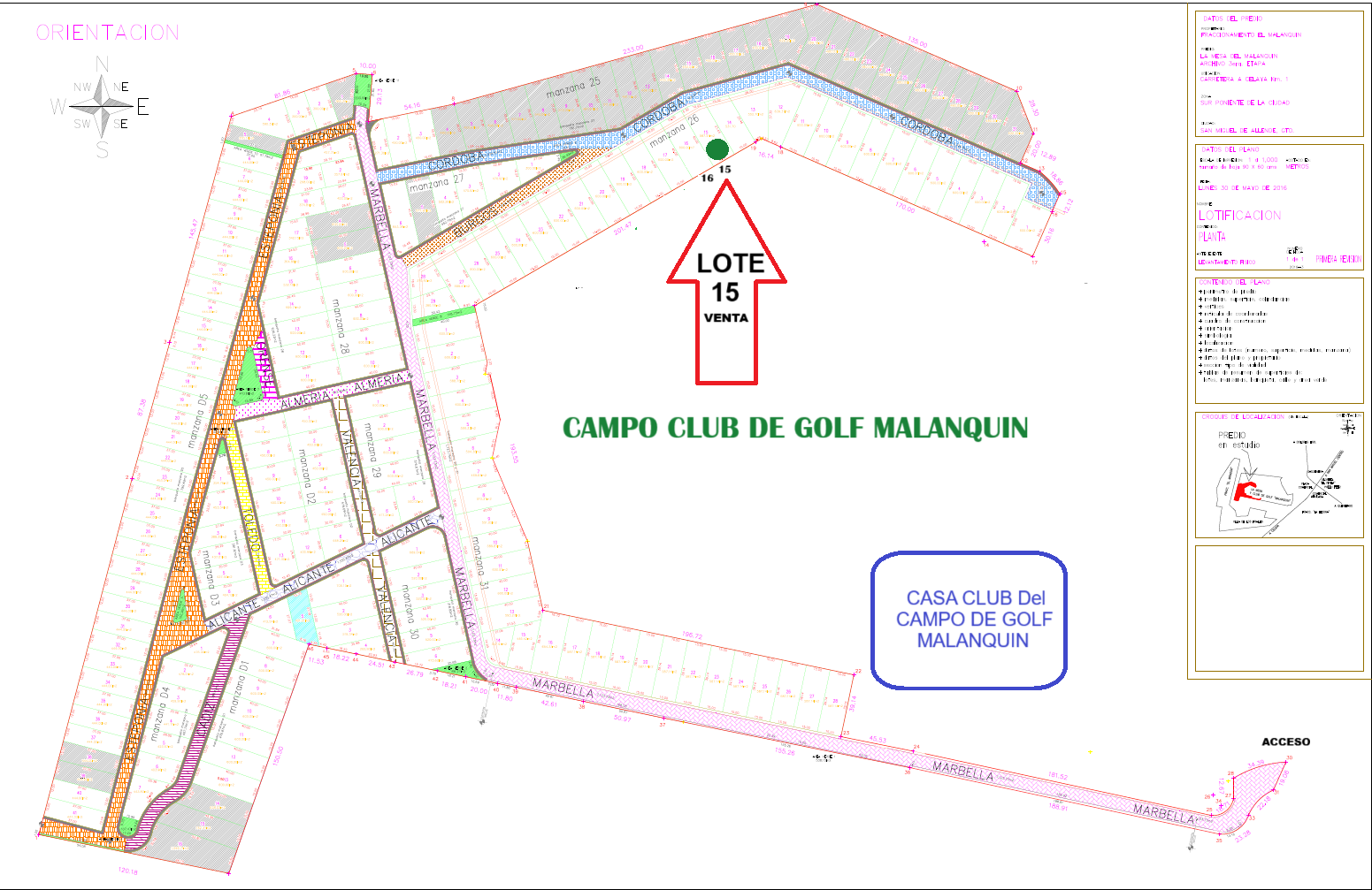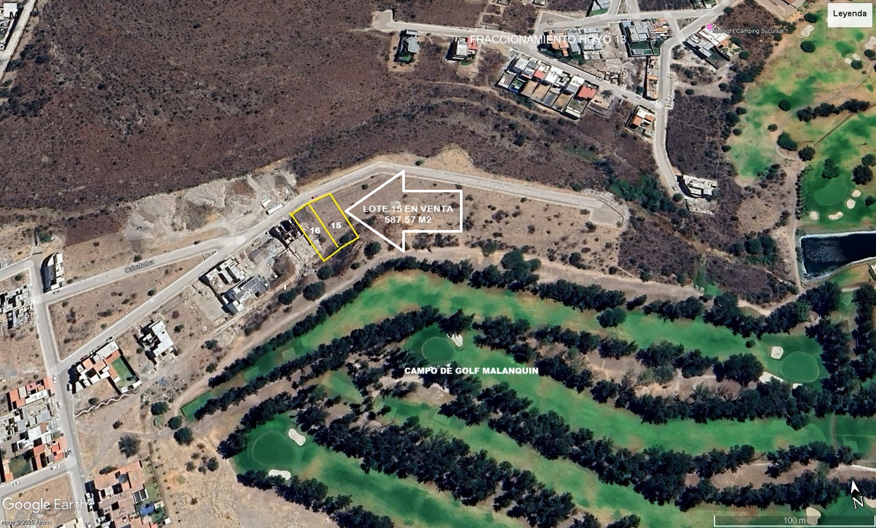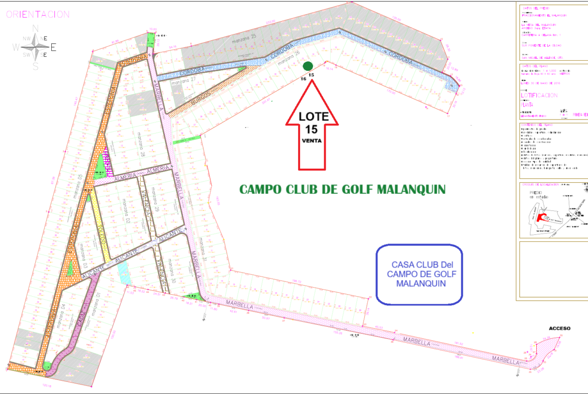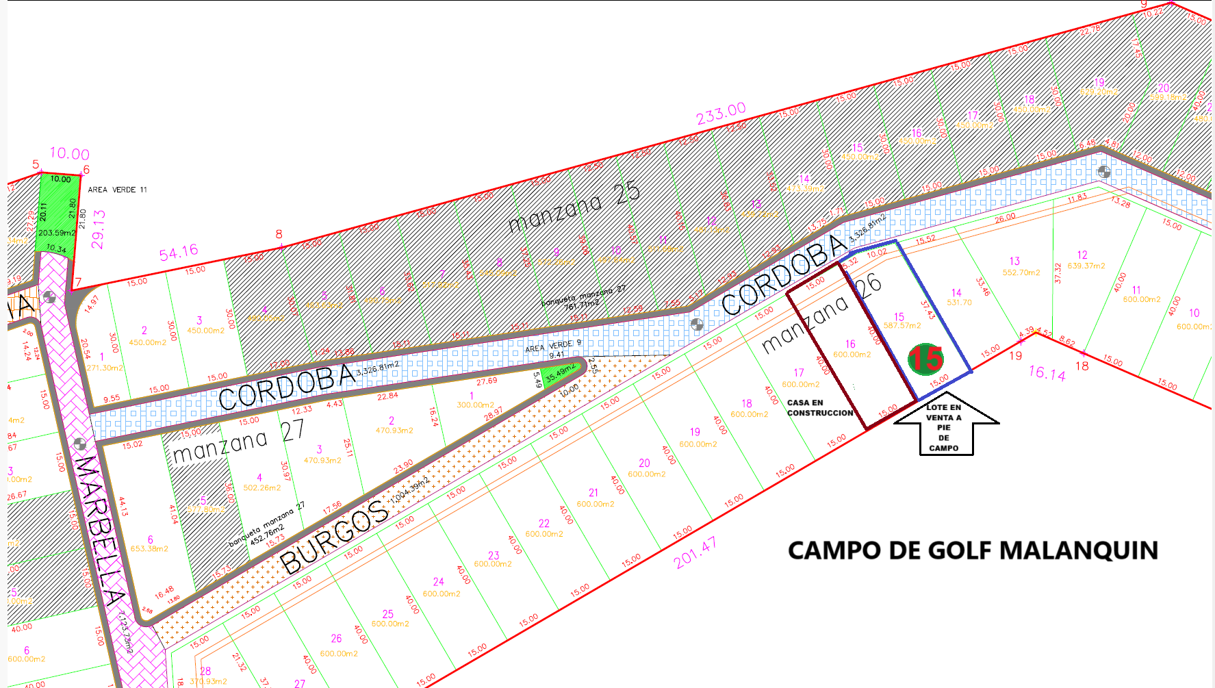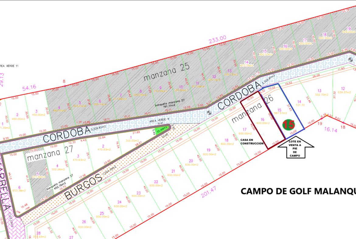 Area del lote 587 m2, frente al campo de Golf, con un frente de calle