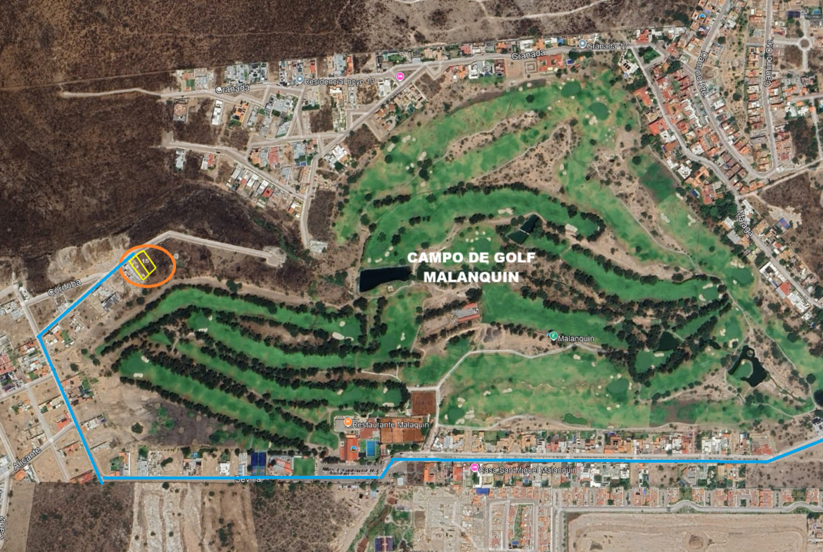 Area del lote 600 m2, frente al campo de Golf, con un frente de calle